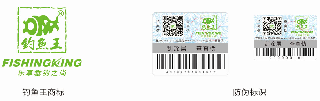 一、購買正品魁拔系列釣竿時(shí)請(qǐng)認(rèn)準(zhǔn)正確的釣魚王商標(biāo)。并認(rèn)準(zhǔn)打假防偽標(biāo)識(shí)(防偽標(biāo)識(shí)自2015年9月15日起正式使用),如下圖: