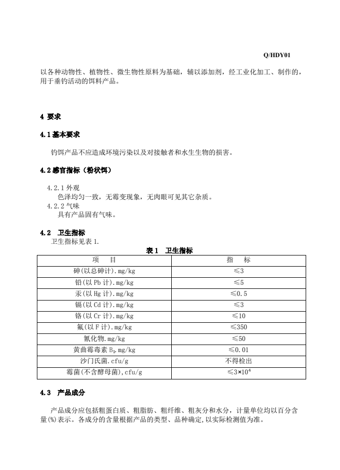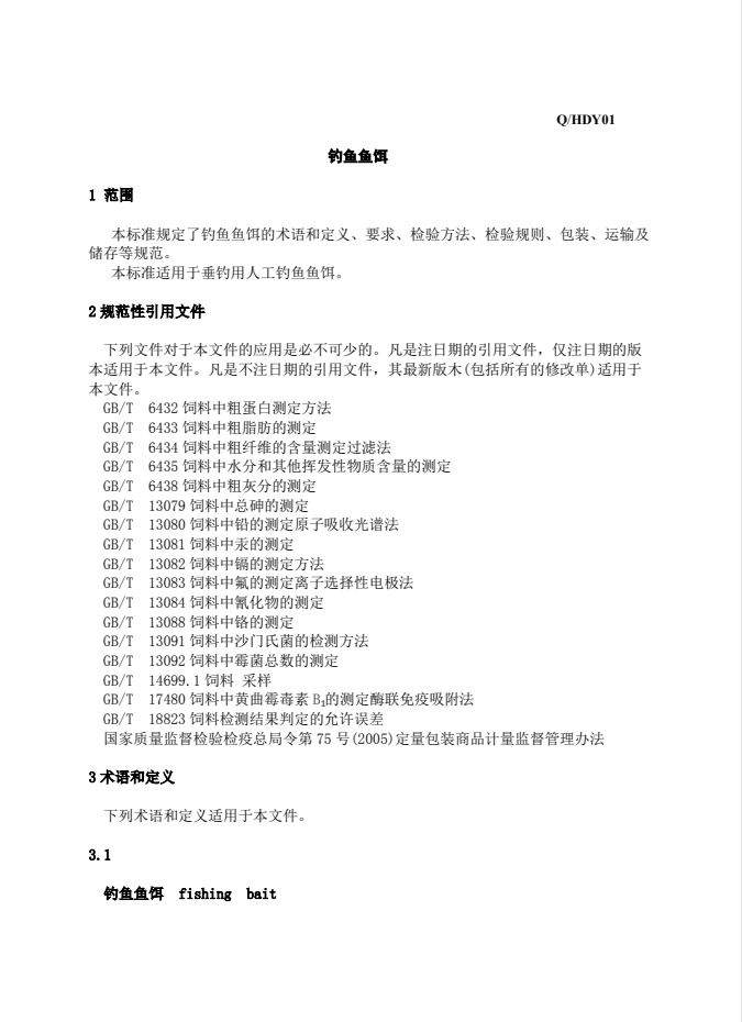 湖北釣魚王漁具有限公司企業(yè)標準(釣魚魚餌)